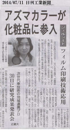 化粧品事業に新規参入した記事が日刊工業新聞にとりあげられました。